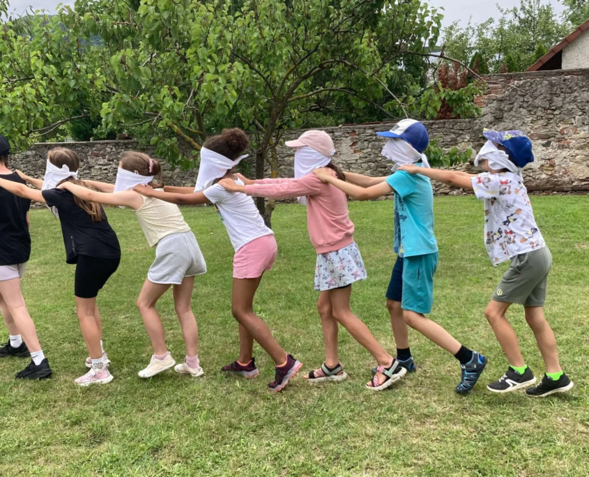 Začnem však od začiatku. Najprv sme sa teda stretli na chate v Plaveckom Mikuláši na teambuildingu animátorov zo Sološnice a z neďalekej Kuchyne, ktorí bol fakt super. Po ňom už som nemala ani najmenšiu pochybnosť o tom, že aj tábor bude super. A fakt bol. Prvý deň bol zoznamovací. Deti sa učili mená animátorov, my sme sa učili mená detí a všetci sme sa snažili tváriť, že si určite zapamätáme všetkých. Celkom rýchlo sa rozbili prvotné ľady pri zoznamovačkách a keď sme si tvorili tímové erby, zistila som, že môj umelecký talent na tábore je mnohonásobne väčší než na hodinách výtvarnej na vysokej škole.