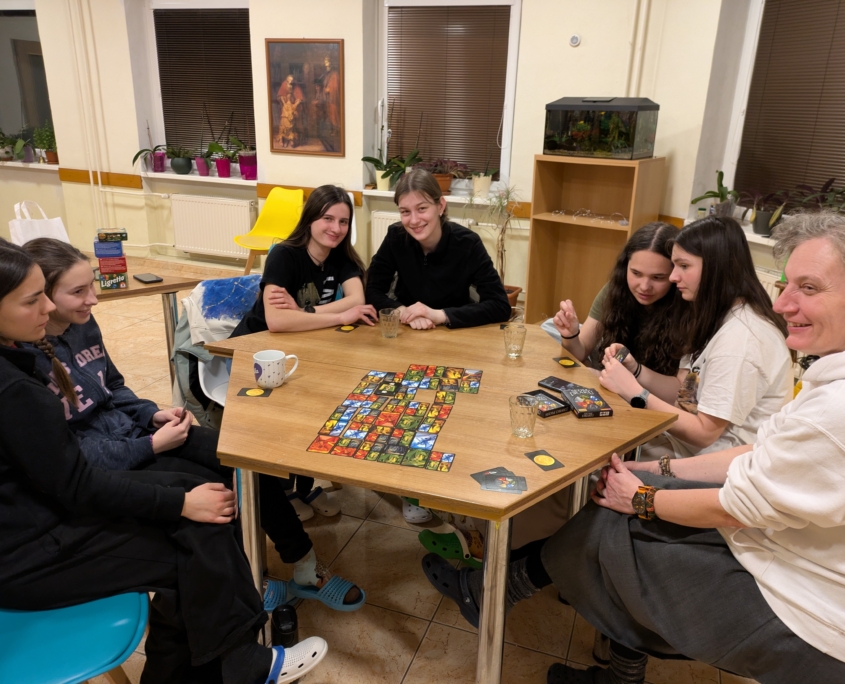 Tešili sme sa na sestru Mariku, ktorá nás privítala v ich dome a stredisku. S ňou sme sa hneď cítili ako doma. Absolvovali sme prehliadku priestorov, viacerým sa páčili najmä podzemné a potom malé hobitie dvere na chór do kaplnky. Večer sme ešte vyplnili hrami. Najčastejšou hrou výletu bolo jednoznačne Ligretto, pár osôb pri tom dosahovalo priam profesionálnu úroveň.